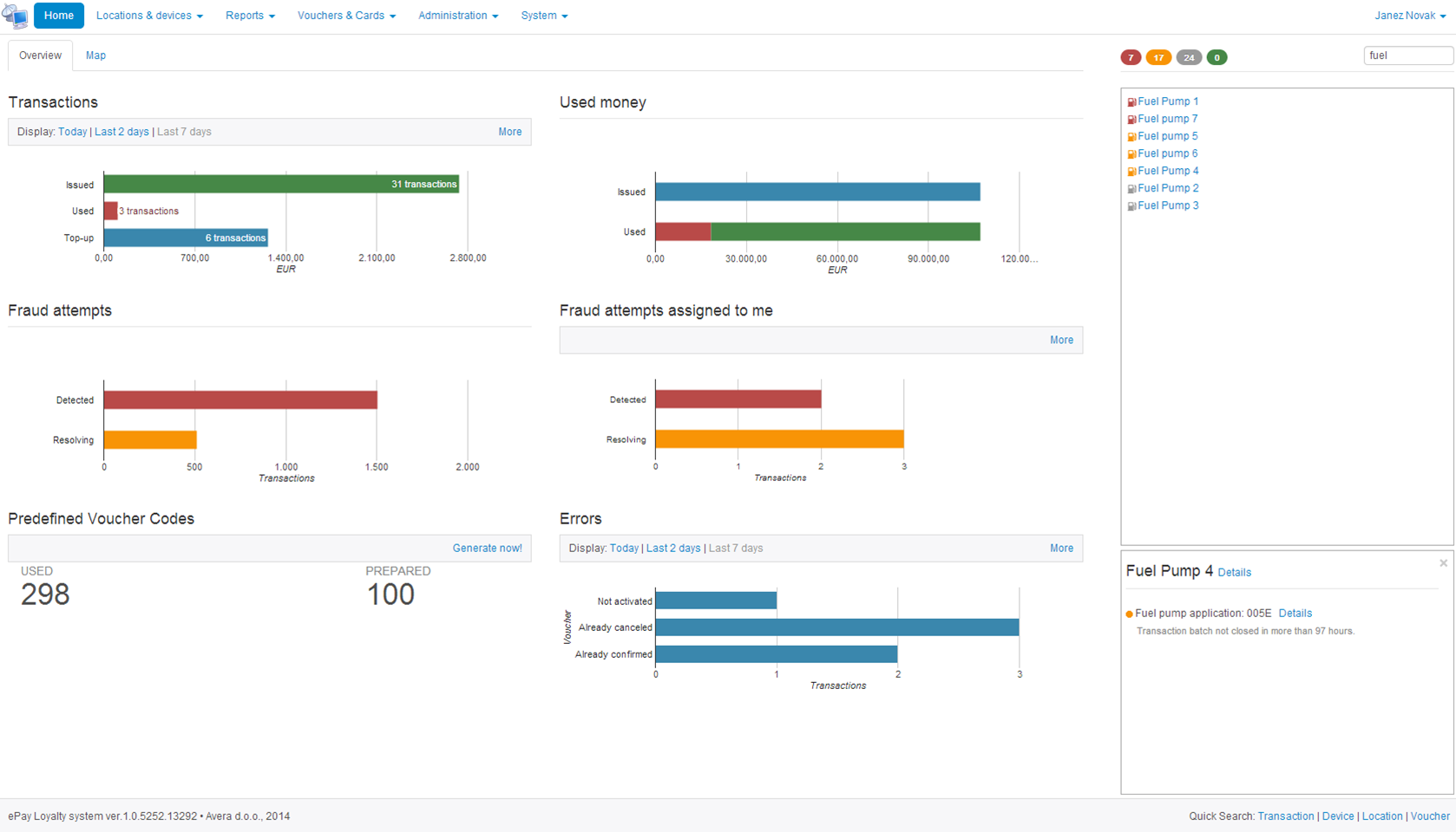 ePay Loyalty spletni center vam v realnem času zagotavlja vse informacije, ki jih potrebujete za analizo ter učinkovito odpravljanje morebitnih težav na terenu. Vedno in povsod so vam na voljo: